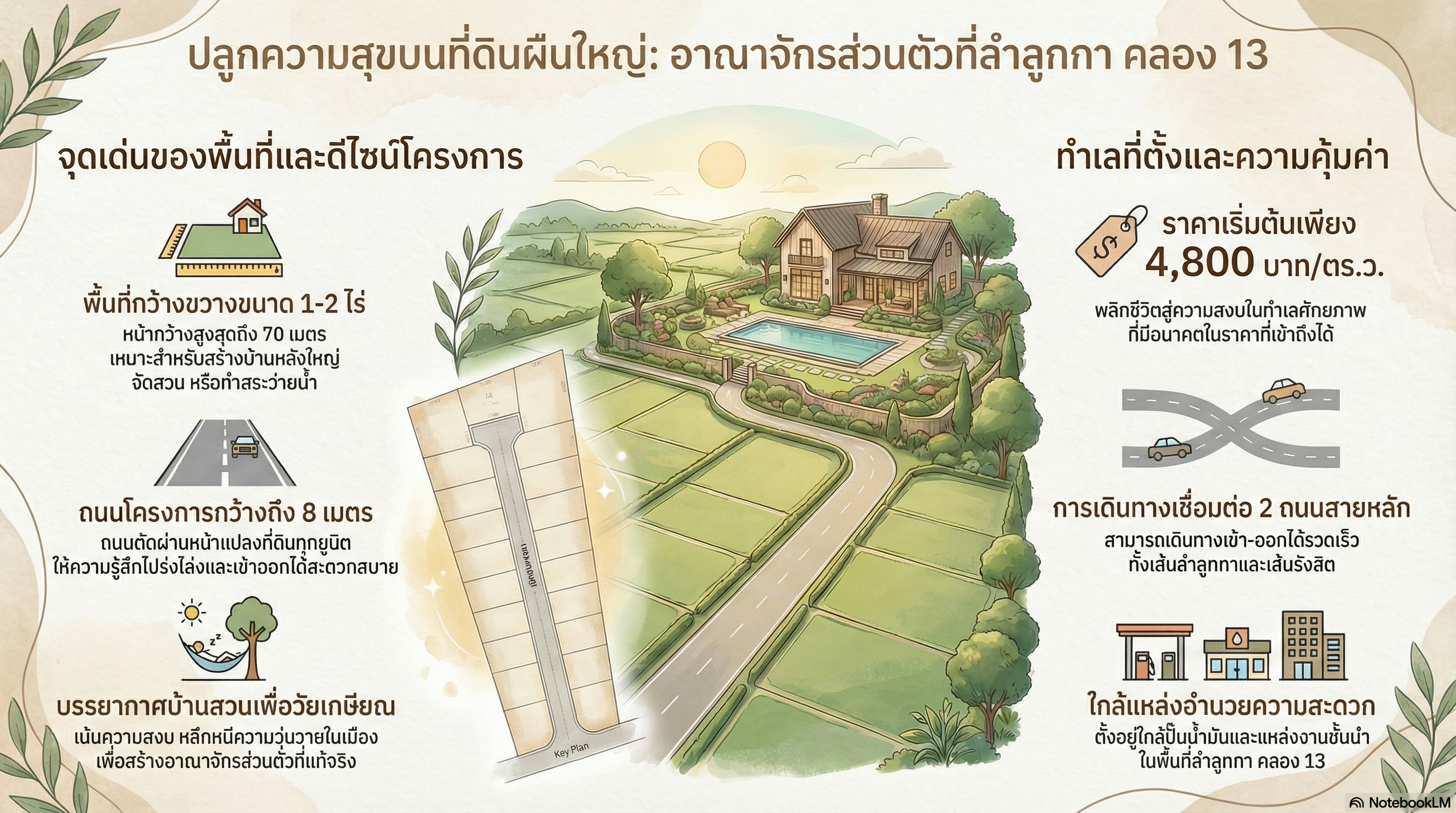 - การคมนาคมสะดวก ทำเลติดถนนลำลูกกาคลอง 13 สามารถเชื่อมต่อไปยังถนน รังสิต นครนายกได้อย่างสะดวก